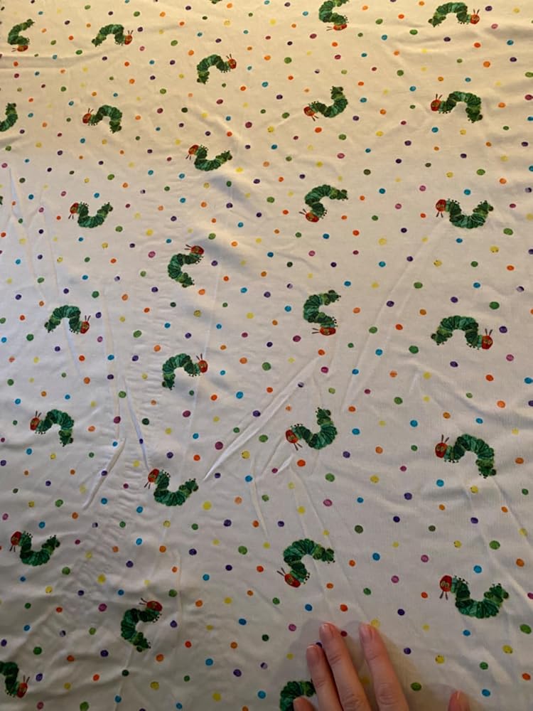 This sheet matches the caterpillar in The Very Hungry Caterpillar perfectly. The sheet fits a crib mattress with no difficulties. It is as soft as can be. It isn't wrinkled looking. It is pricey but you can tell how luxurious it feels compared to a lesser quality sheet. I like the look and feel of this crib sheet very much.